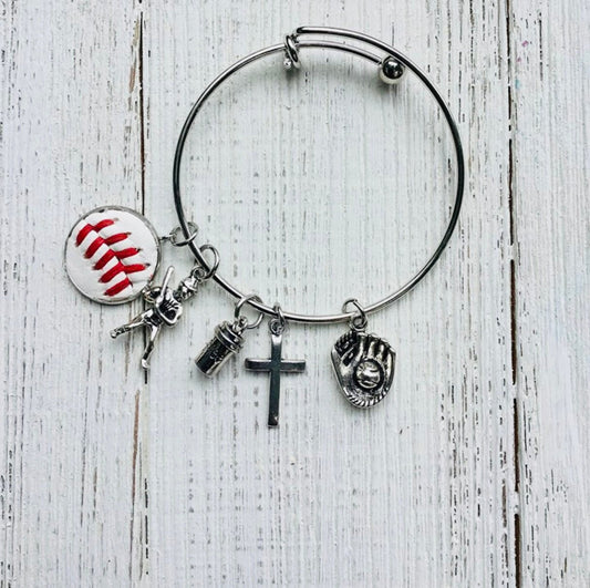 Custom Baseball / Softball Bangle Bracelet with Four Charm Selections